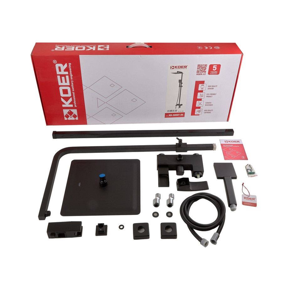Душова колона Koer KB-58007-05 – це ідеальне рішення для тих, хто цінує якість, сучасний дизайн та комфорт у ванній кімнаті. Витончене поєднання чорного кольору та інноваційних технологій робить цю модель не тільки естетично привабливою, але й максимально зручною у використанні.