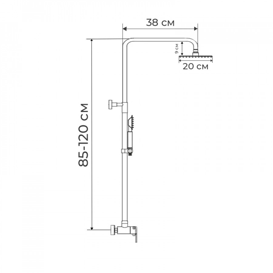 - Верхній душ: діаметр 200 мм, забезпечує рівномірний потік води;