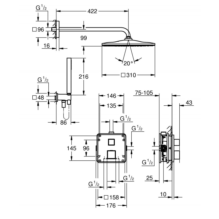 Технічні характеристики душової системи Grohe Grohtherm Cube