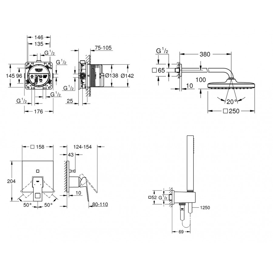 Технічні характеристики душової системи Grohe Eurocube New Tempesta 250