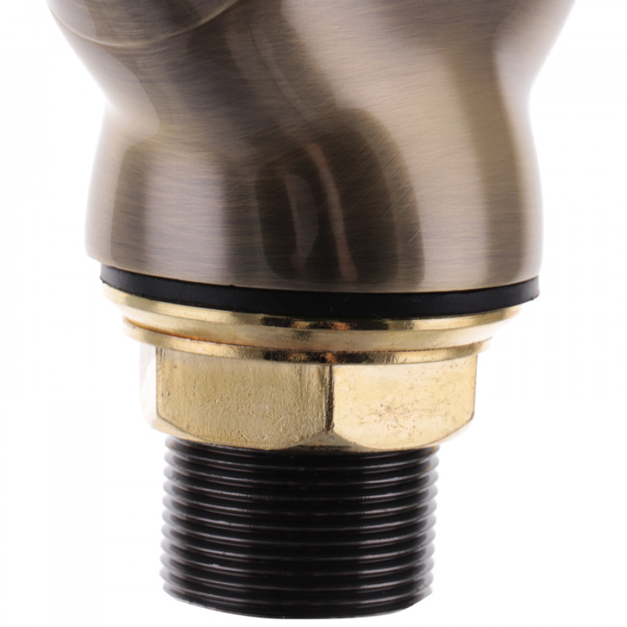- Високоякісні матеріали: корпус змішувача виготовлений з міцної латуні з бронзовим покриттям, що забезпечує стійкість до корозії та механічних пошкоджень.