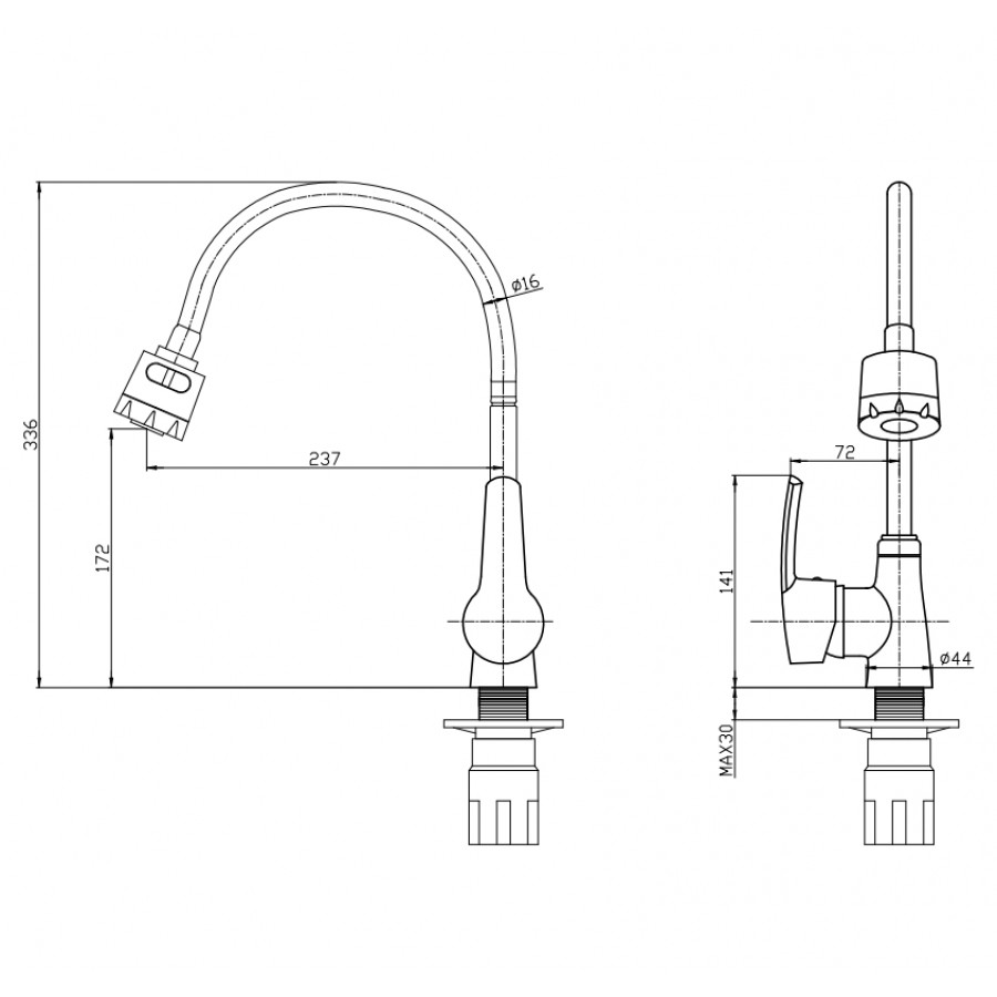 - Тип монтажу: одноважільний змішувач для кухні з кріпленням на мийку або стільницю;