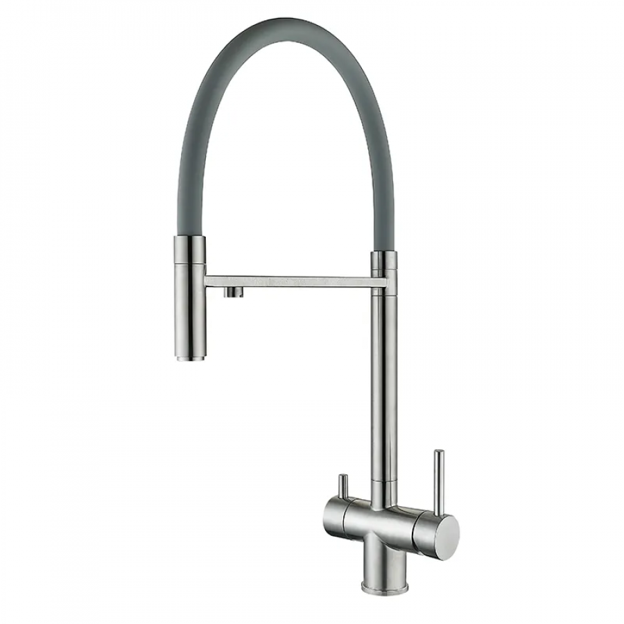 Теги: Кухонний змішувач на дві води з гнучким виливом Zerix KIT-021 Refl.Gray (нерж. сталь) (ZX4861), , ZX4861, O&L, Крани та змішувачі