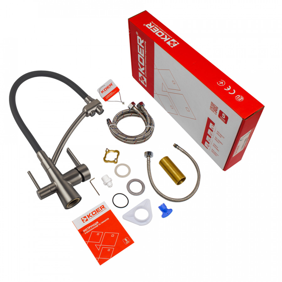 Теги: Кухонний змішувач з силік. виливом і вих. для питної води KOER KB-72003-07 (KR3377), , KR3377, O&L, Крани та змішувачі