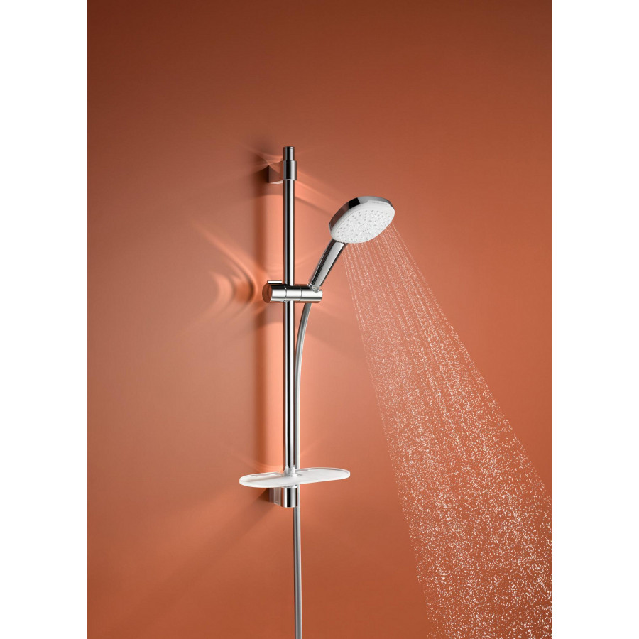 Набір для душу Grohe Tempesta Cube 110 легко встановлюється на стандартний душовий вивід, що робить процес монтажу швидким і зручним. Вбудована поличка – це не лише практичний, а й естетичний елемент, який дозволяє утримувати необхідні засоби догляду під рукою, не захаращуючи простір. Завдяки трьом режимам роботи можна легко підібрати оптимальний варіант подачі води для відпочинку або бадьорого ранкового душу.