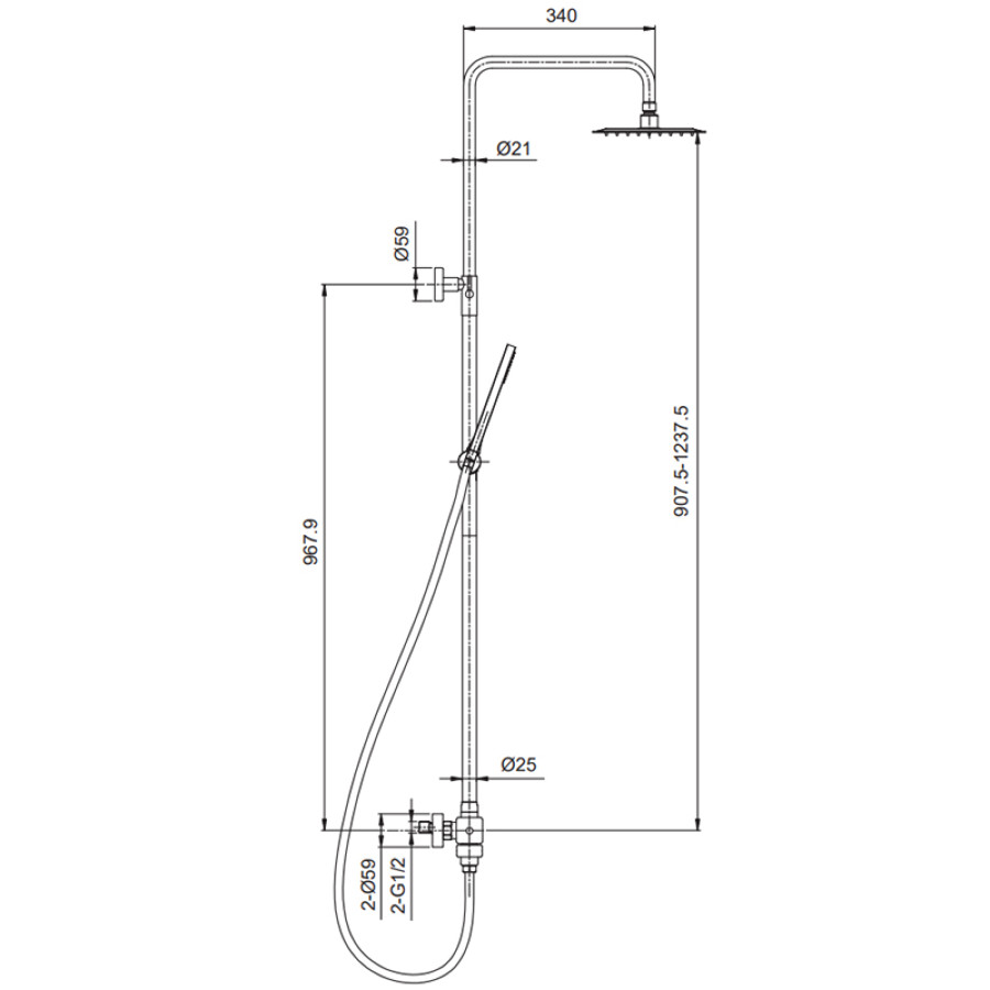 - Комплектація: душова лійка, шланг, змішувач, термостат