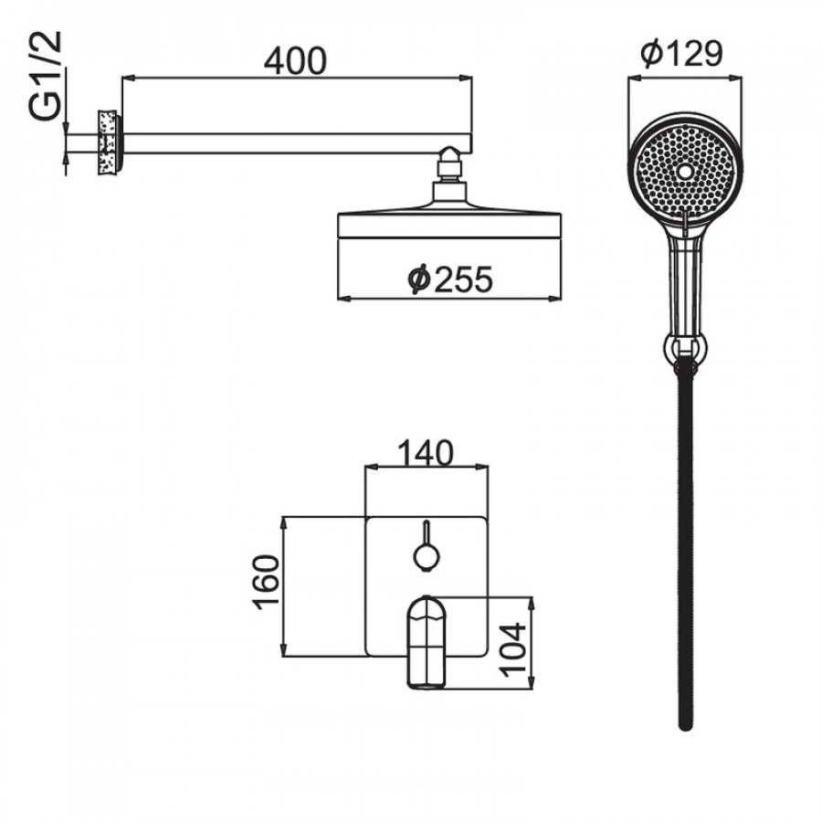 - Габарити (зовнішні елементи): стандартні для сучасних душових систем.