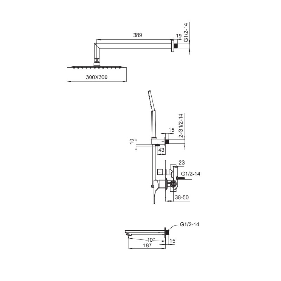 - Комплектація: душова лійка, вбудований змішувач, кріплення, шланг