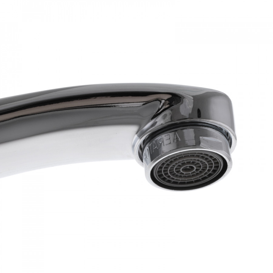 - Тип конструкції: вигнутий гусак – забезпечує зручний напрямок потоку води, виключає бризки і підвищує ергономіку.