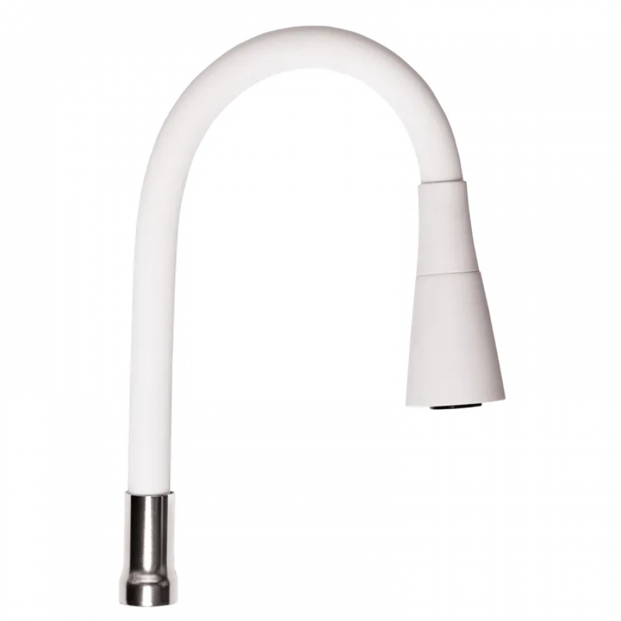 - Зручність у експлуатації. Гнучкість силікону дозволяє направляти струмінь води у потрібне місце, що особливо важливо для умивальників з глибокою ванною або кухонних мийок.