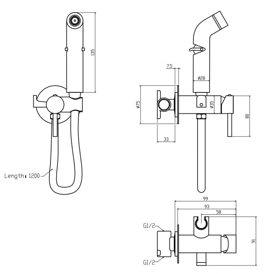 - Комплектація: змішувач з лійкою для гігієнічного душу