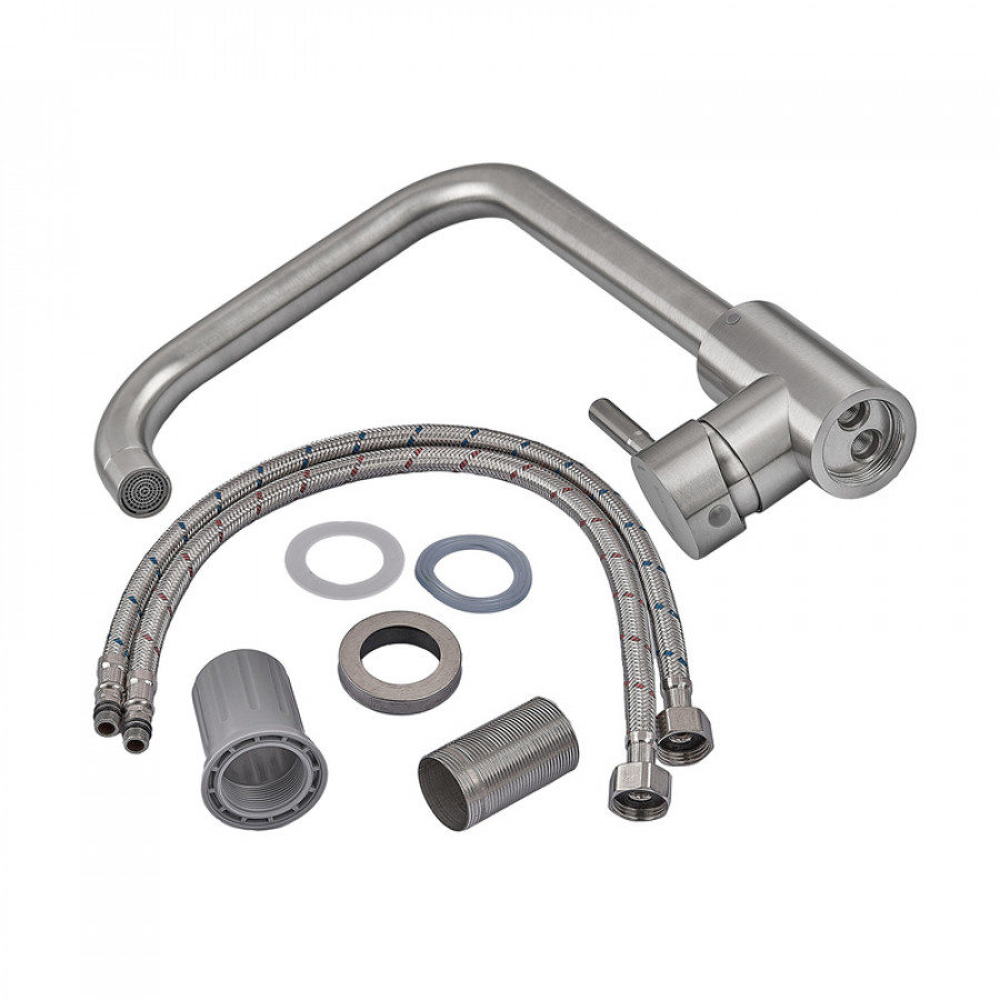 Змішувач Armata SUS-011-G з нержавної сталі – це ідеальний вибір для тих, хто цінує якість, довговічність та естетику у сантехнічних виробах. Завдяки своїм технічним характеристикам, простоті монтажу та стильному дизайну, він стане надійним помічником у вашій кухні, забезпечуючи комфорт під час приготування їжі та миття посуду.