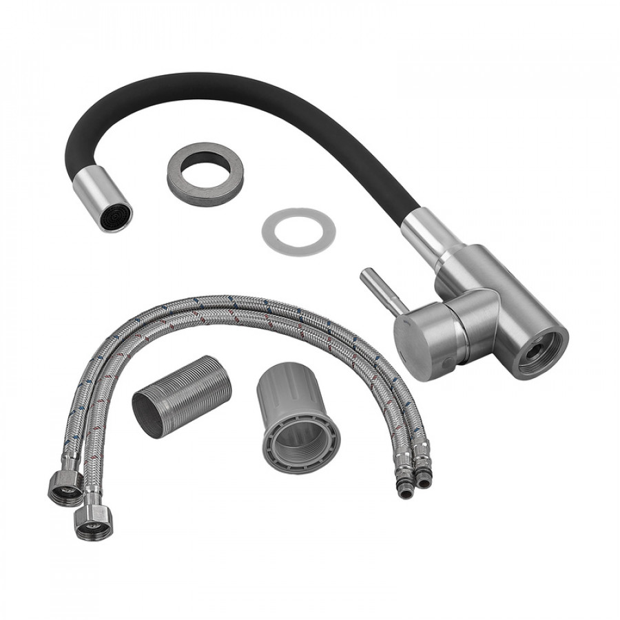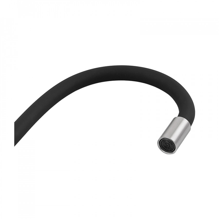 - Тип виливу: силіконовий, гнучкий, чорного кольору, що дозволяє легко направляти потік води;