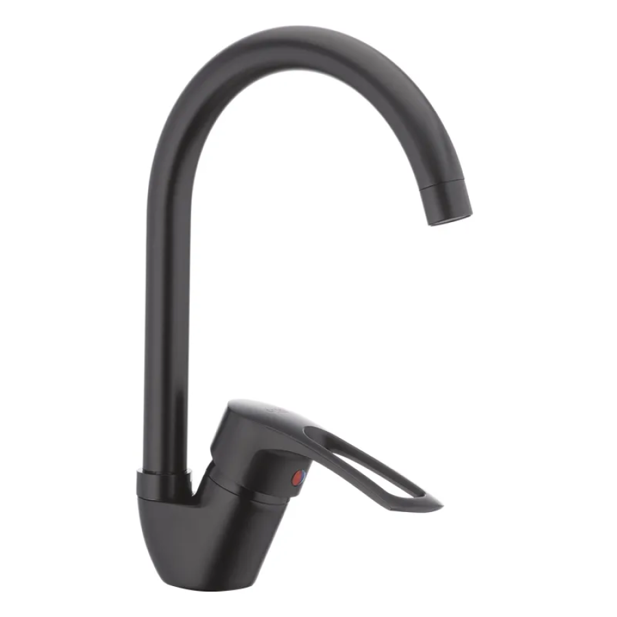 - Сучасний дизайн: матове чорне покриття робить змішувач стильним акцентом будь-якого кухонного інтер’єру;