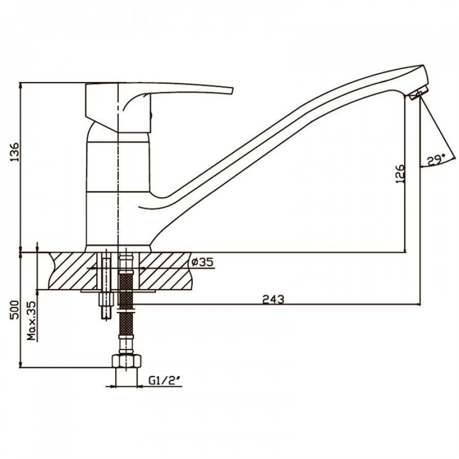 - Тип картриджа: керамічний, 35 мм;