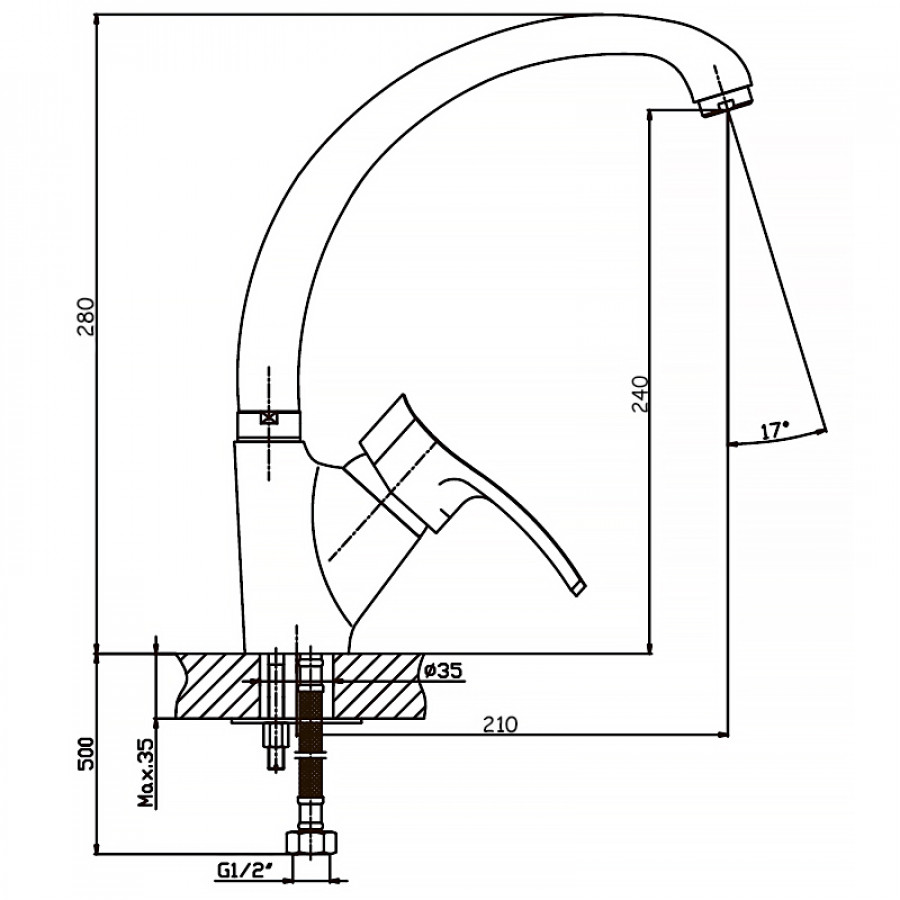 - Висота змішувача: 280 мм