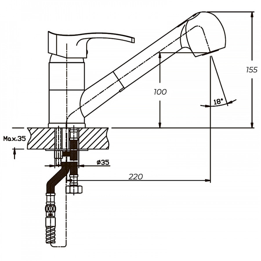 - Висота змішувача: 320 мм