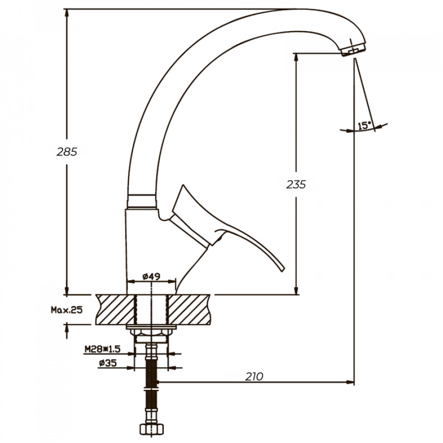 - Зручність використання: гнучкий вилив довжиною 240 мм забезпечує комфорт при митті посуду та наповненні великих ємностей.
