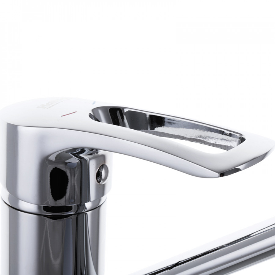 - Сучасний дизайн. Лаконічна форма і класичне хромоване покриття дозволять змішувачу гармонійно вписатися в будь-який інтер’єр кухні, надаючи їй елегантності та сучасності.