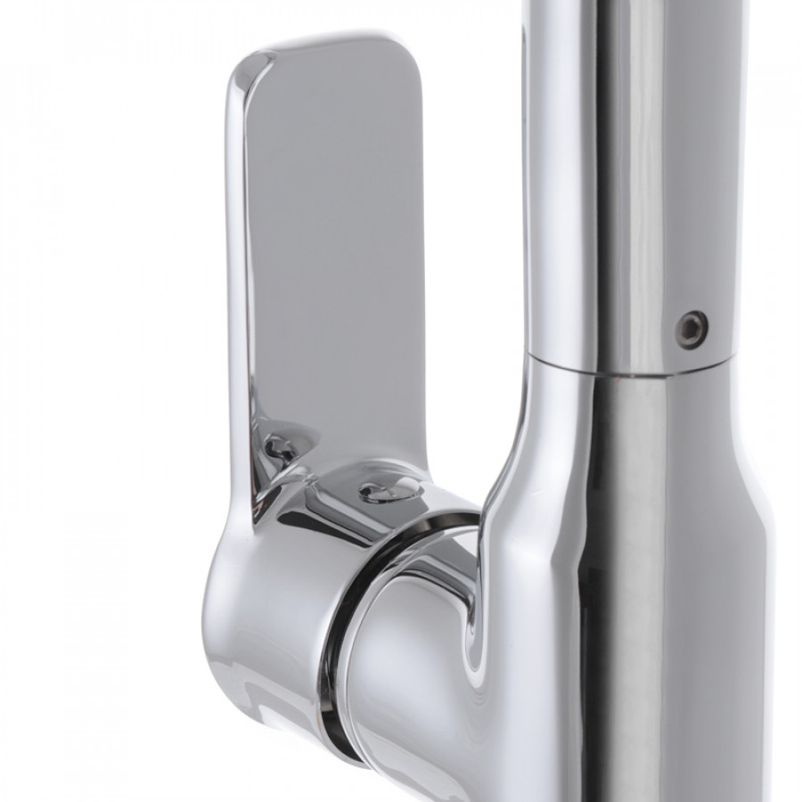 - Функціональність: поворотний вилив діаметром 360°, що дозволяє комфортно мити великі каструлі та посуд.