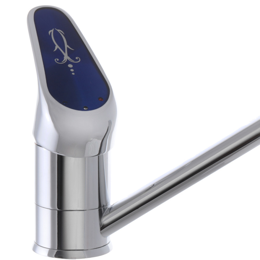 - Олена, Київ: «Кран дуже зручний у користуванні, легко регулюється температура і напір. Синя ручка виглядає стильно і додає кухні особливий шарм.»
