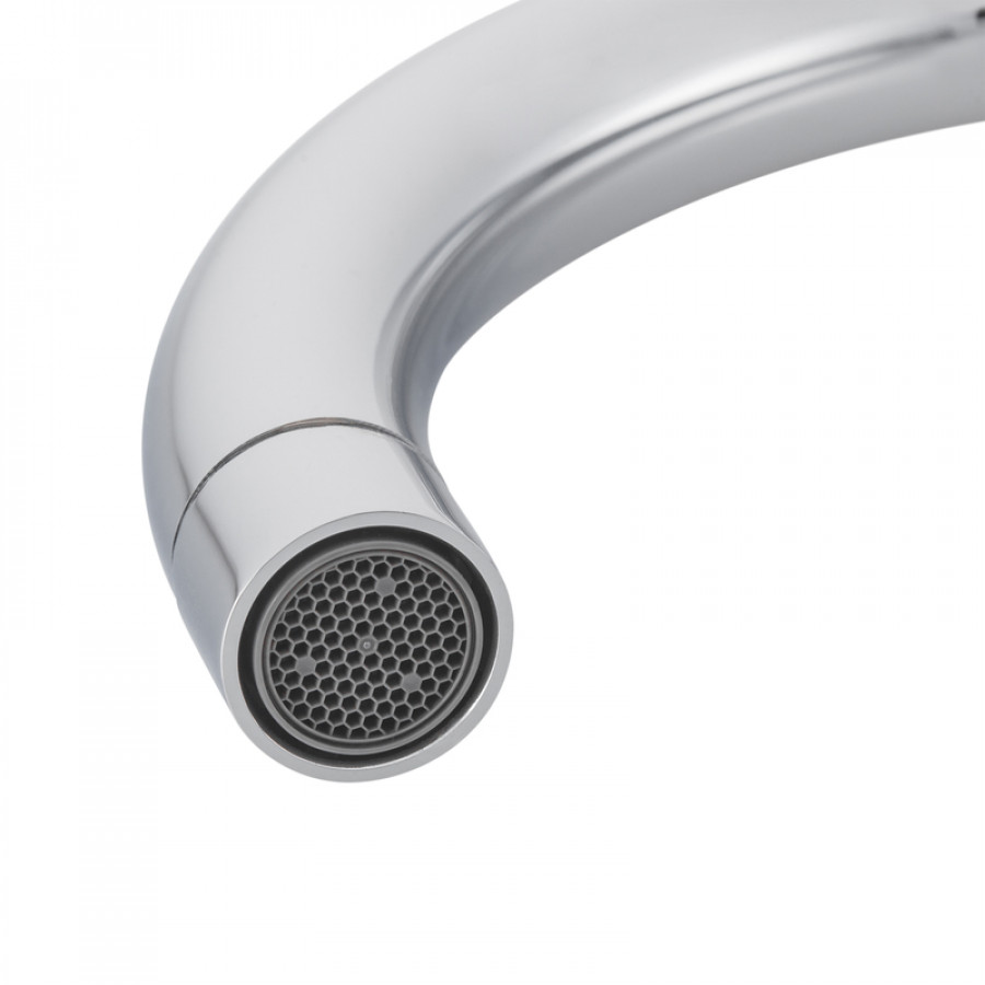 - Обертання виливу на 360°: дозволяє легко направляти струмінь води у будь-яку сторону, що особливо зручно при митті великого посуду або наповненні ємностей.