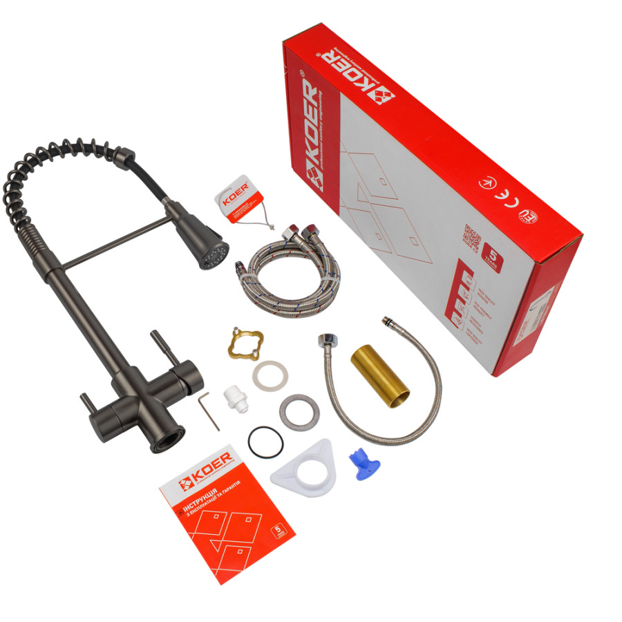 Теги: Змішувач для кухні Koer KB-72025-07 з виходом для питної води (вилив - пружина) (KR5016), , KR5016, O&L, Крани та змішувачі