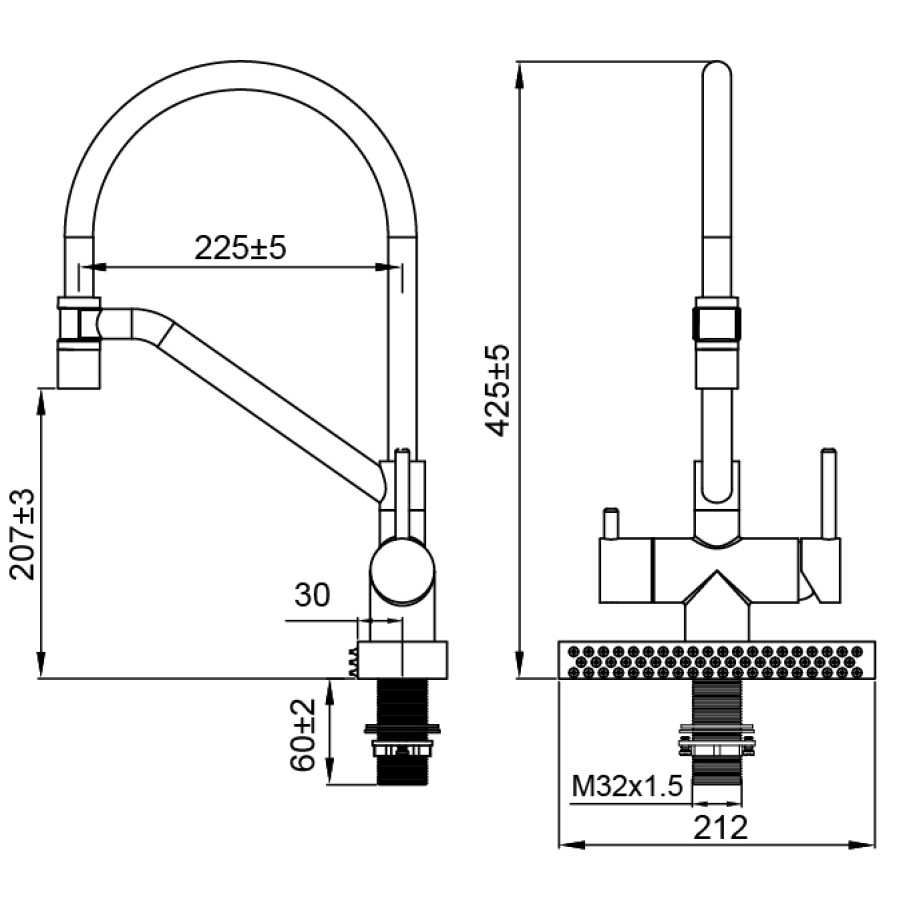 - Довжина виливу: 210 мм