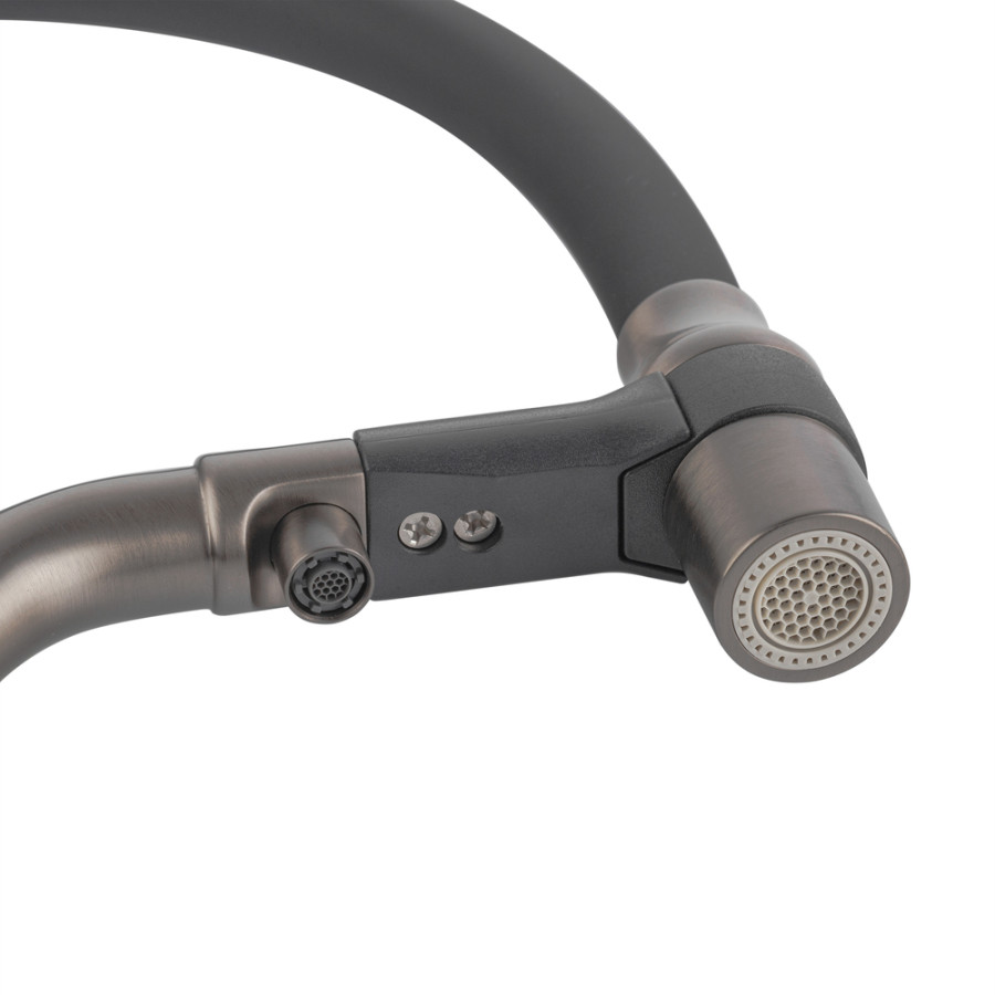 - Зручність у використанні – поворотний вилив на 360°, що дозволяє легко направляти струмінь води в будь-яку точку мийки.