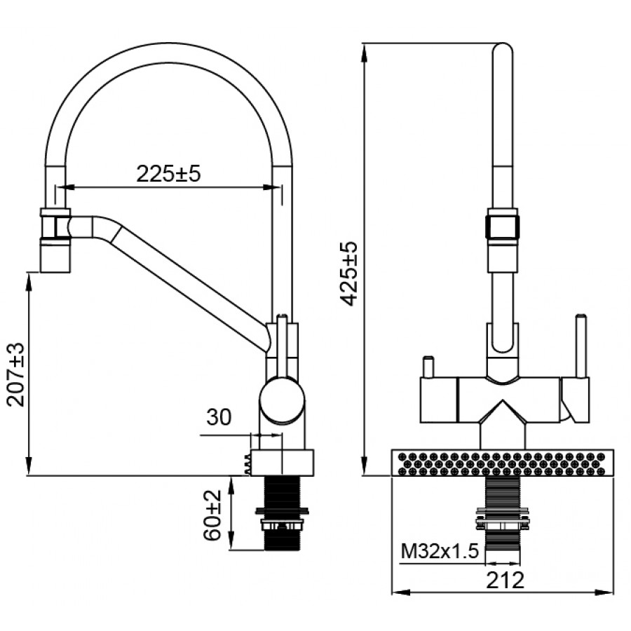 - Висота змішувача: 310 мм