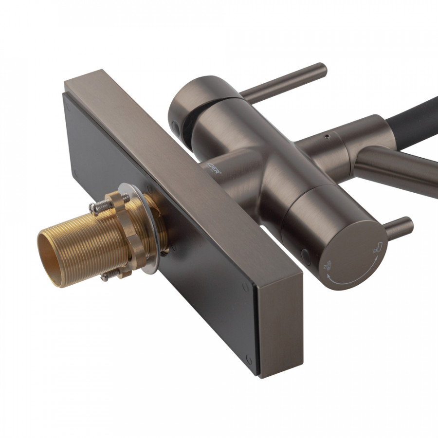 - Чорний силіконовий вилив – не тільки стильний елемент, але й практичний, що запобігає утворенню вапняних відкладень та полегшує догляд.