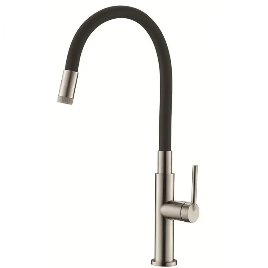 Змішувач для кухні Koer KI-70032-02 з нерж. сталі SUS304 (Колір нерж+силіконовий вилив чорний) (KR5
