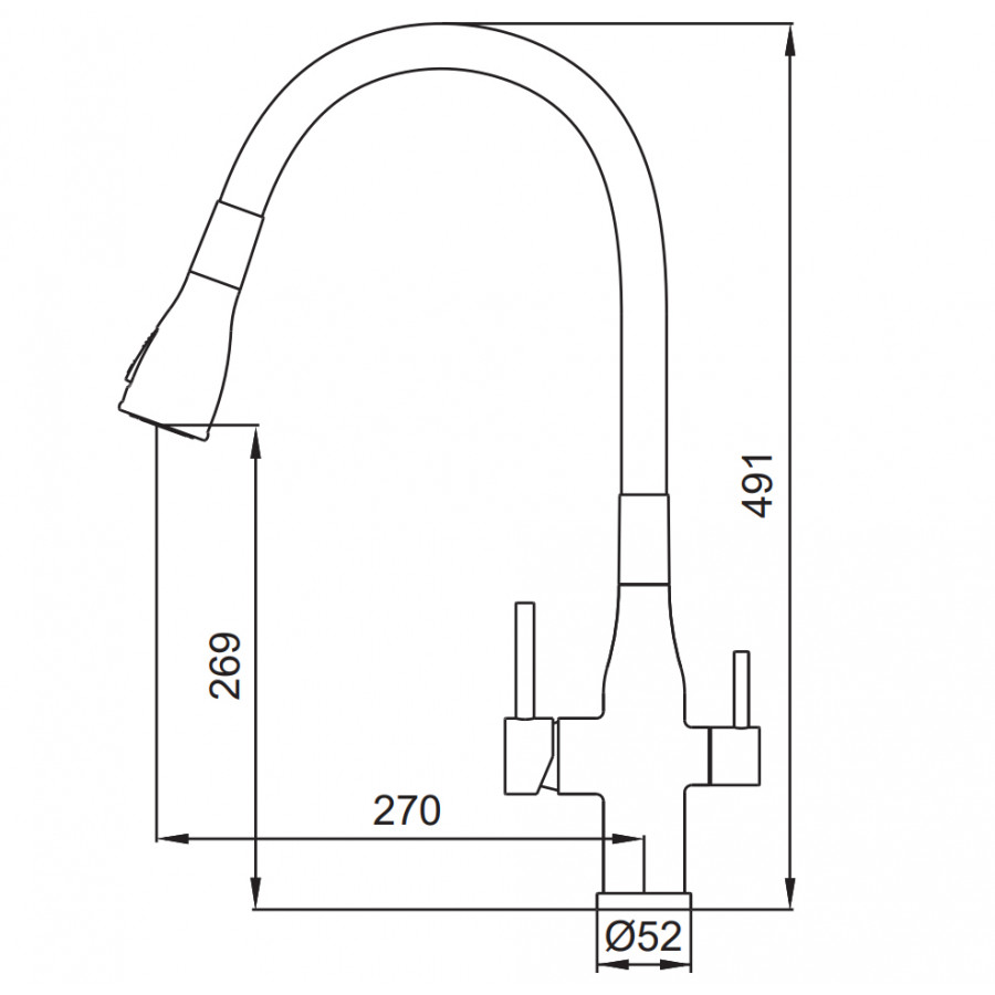 - Висота змішувача: 320 мм.