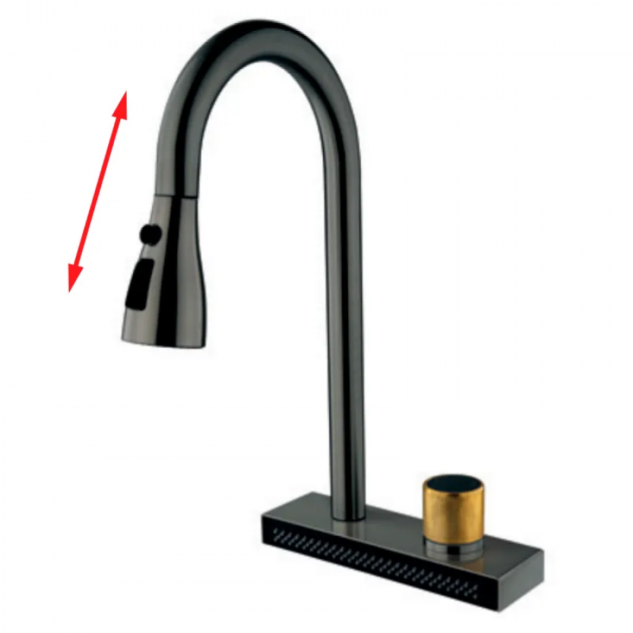 Змішувач для кухні Mixxus FOL-014 Graphite з висувною лійкою та функ."водоспад" з нерж.сталі (колі