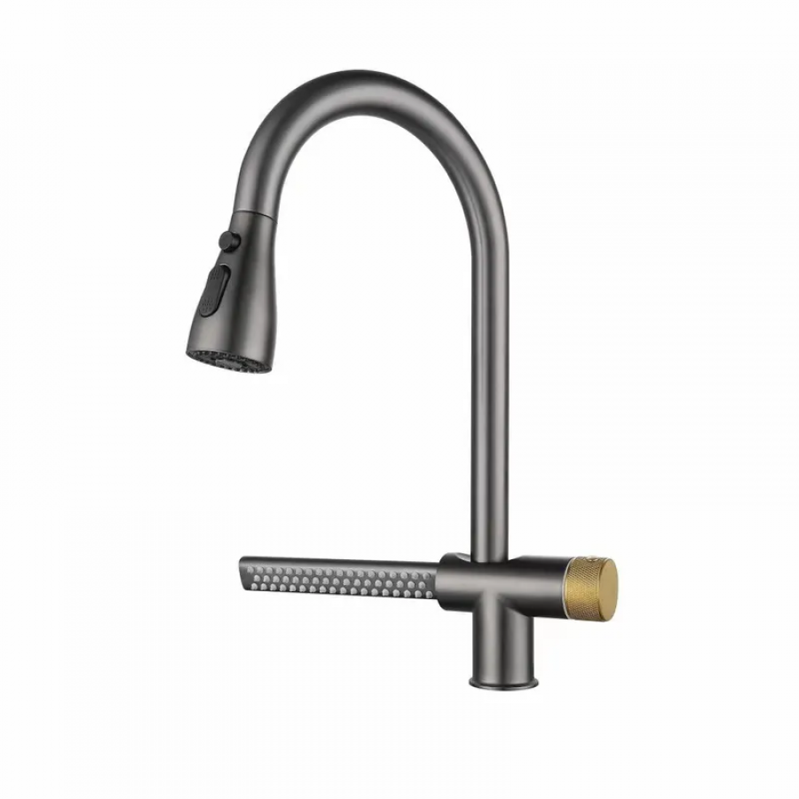 Змішувач для кухні MIXXUS FOZ-014 GRAPHITE з висувною лійкою та функцією «водоспад» (MI6538)
