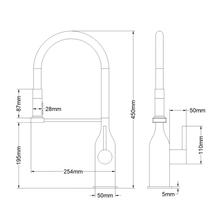 - Висота виливу: оптимальна для зручного миття посуду та наповнення високих ємностей.