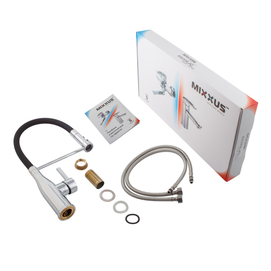 - Легкий монтаж: В комплекті йдуть всі необхідні елементи для швидкого та надійного встановлення змішувача.