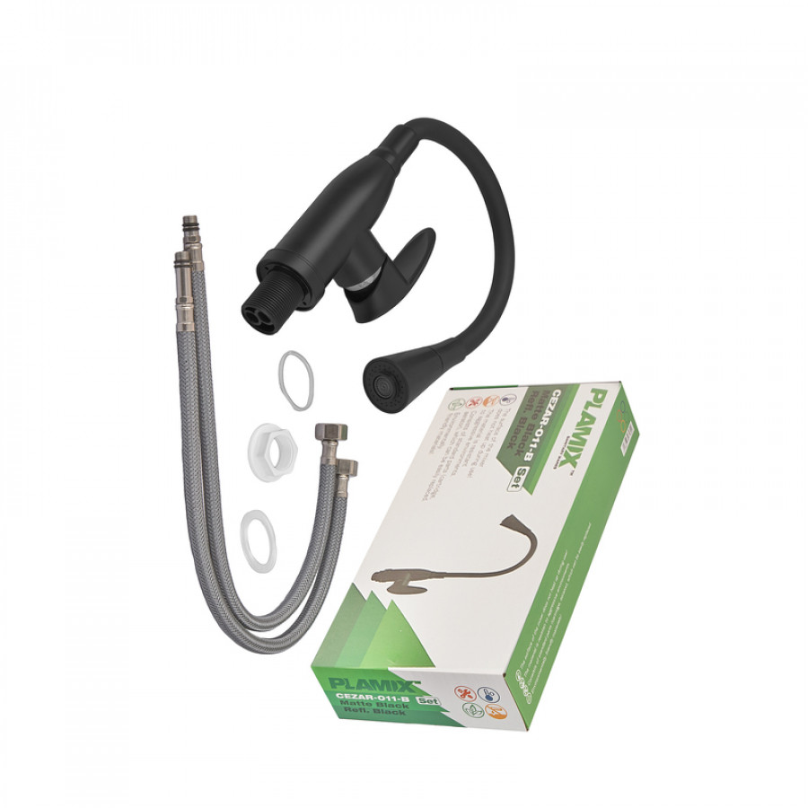 Змішувач для кухні PLAMIX CEZAR-011-B SET MATTE BLACK REFL.BLACK з силіконовим виливом, з підведенням – сучасне рішення для вашої кухні