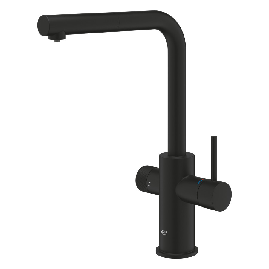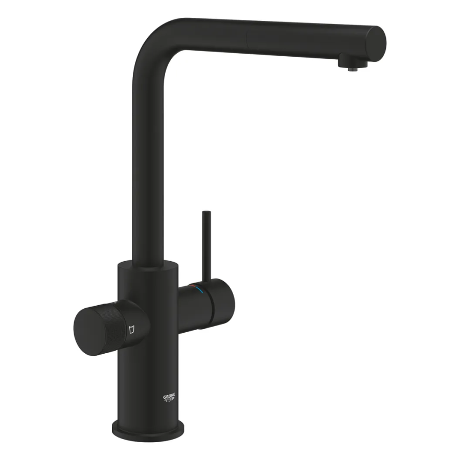 - Інтеграція з фільтром Grohe Blue Pure – можливість підключення до системи очищення води для отримання холодної фільтрованої, а також звичайної гарячої та холодної води.