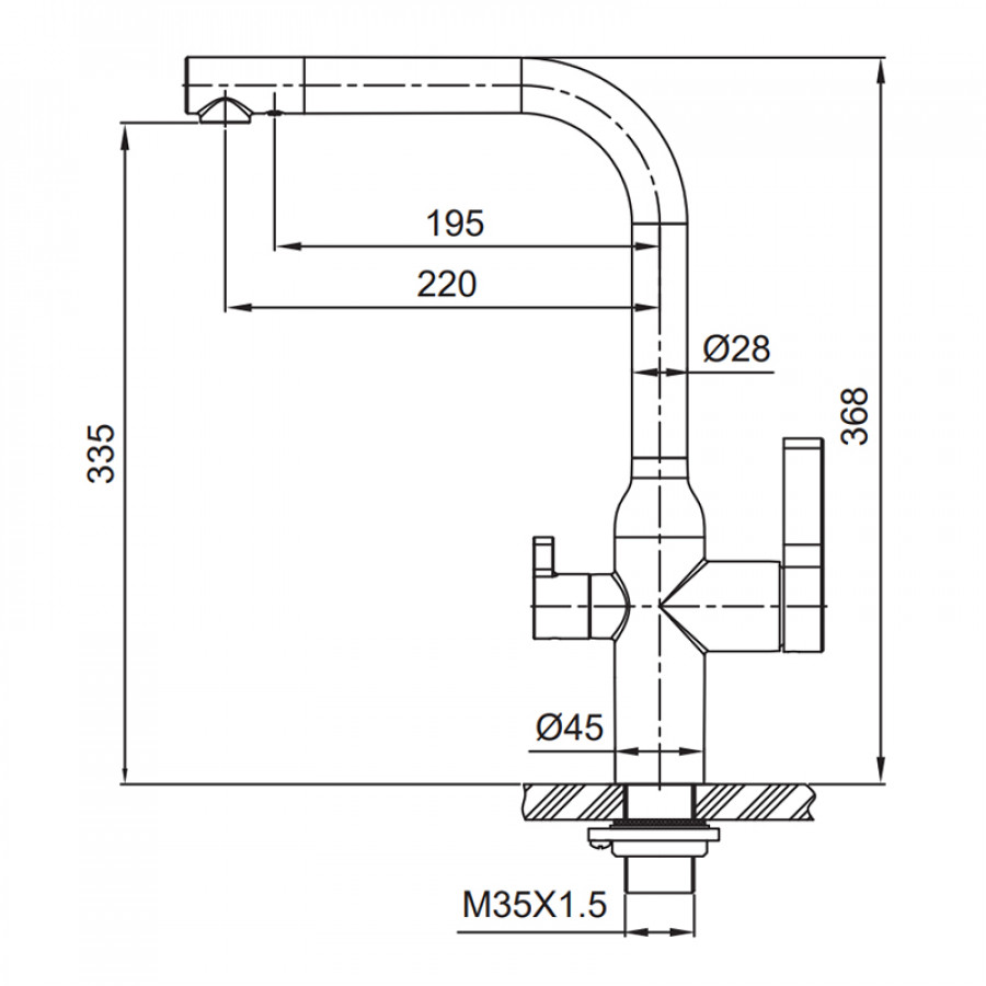 - Вихід для питної води: окремий носик з системою фільтрації;