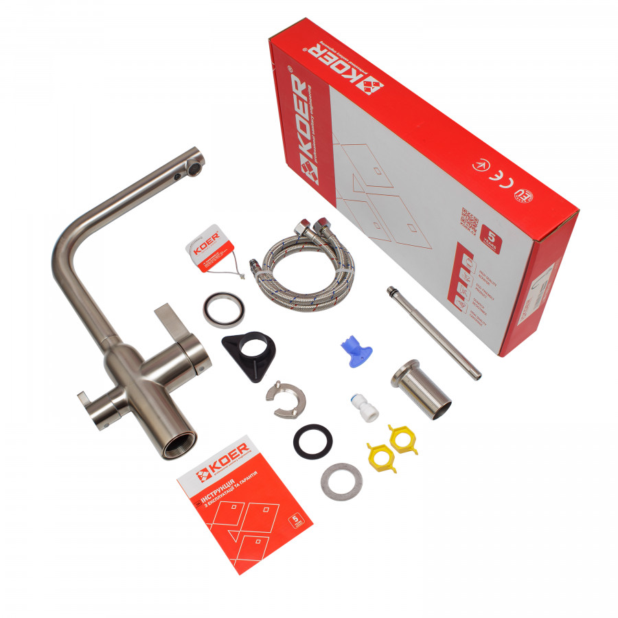 Теги: Змішувач для кухні з виходом для питної води Koer KI-72020-02 (з нерж. сталі) (KR4797), , KR4797, O&L, Крани та змішувачі