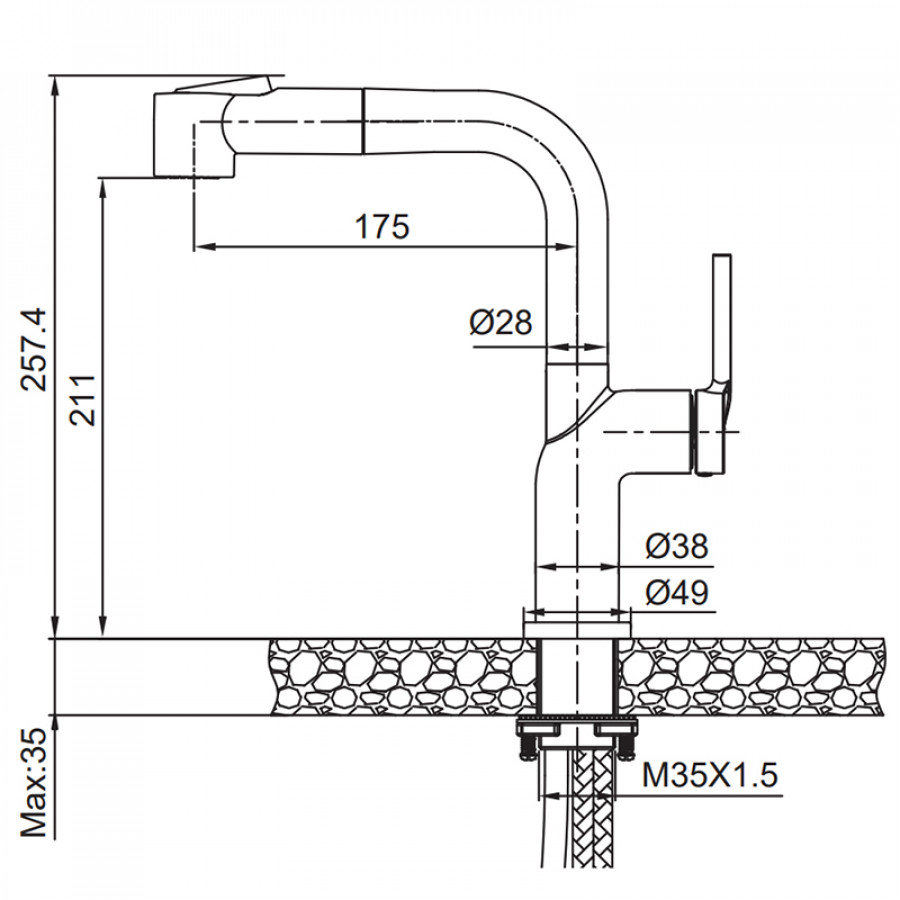 - Тип змішувача: одноважільний