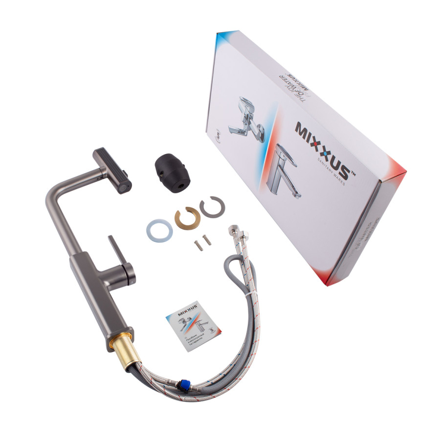 Змішувач для кухні Mixxus Premium HAMMER 014 GRAPHITE – це стильний та функціональний сантехнічний прилад, який поєднує в собі високу якість, ергономічність та інноваційний дизайн. Завдяки сучасним технологіям виробництва та використанню міцних матеріалів, цей змішувач стане надійним помічником у вашій кухні на довгі роки.