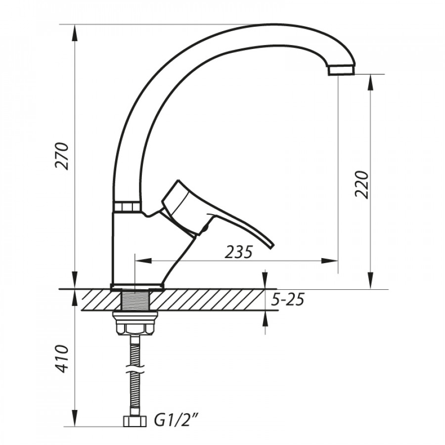 - Тип змішувача: одноважільний;