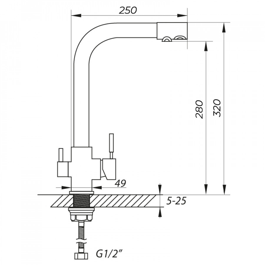 - Висота змішувача: 320 мм