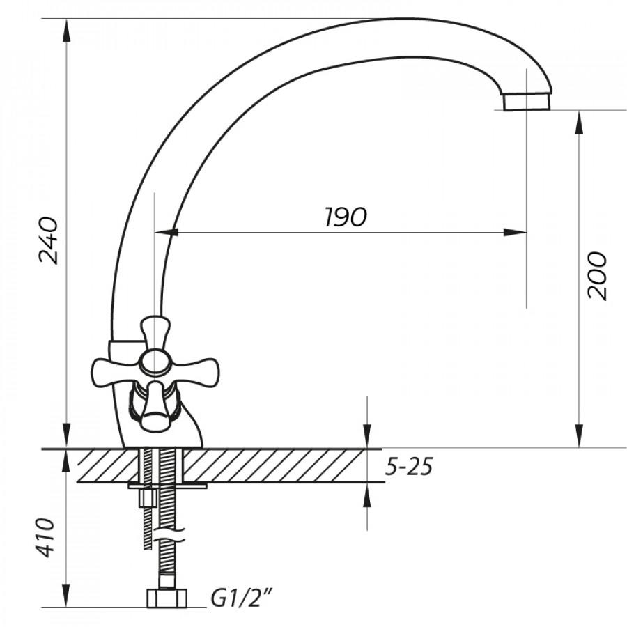 - Зручність у використанні – гнучкий вилив довжиною 220 мм, що дозволяє легко наповнювати великі ємності та мити посуд.