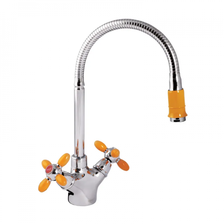 Змішувач для кухні Zerix Z5860-10 (помаранчеві ручки) (ZX0350)