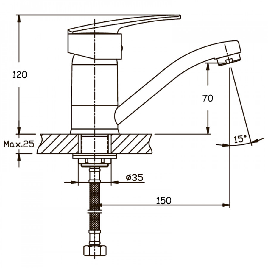 - Вилив довжиною 15 см – оптимальний розмір для більшості стандартних умивальників;