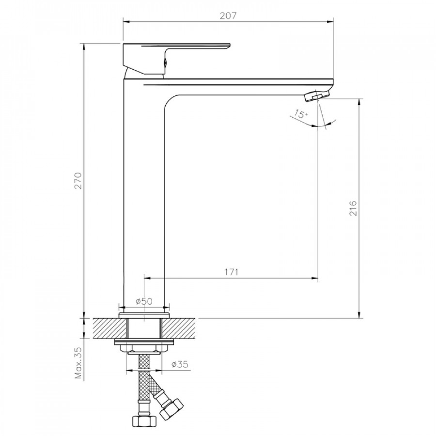 - Тип картриджа: керамічний, діаметр 35 мм