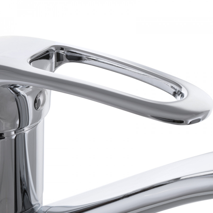 - Зручність у використанні: одноважільне керування дає змогу швидко та легко регулювати температуру та напір води.